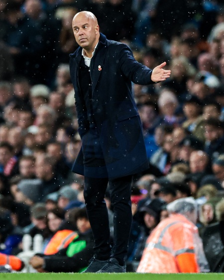 Arne Slot Liverpool manager gives instructions to his team during the Premier League match Manchester City vs Liverpool at Etihad Stadium, Manchester, United Kingdom, 9th November 2025, Credit:Mark Cosgrove/News Images / Avalon