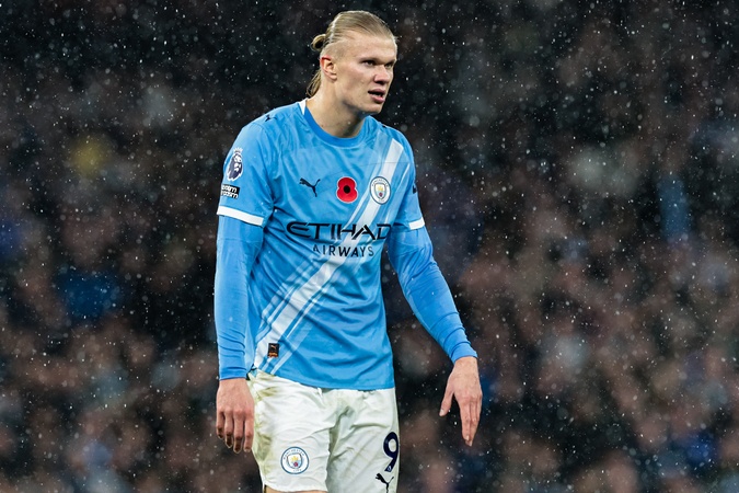 Erling Haaland of Manchester City during the Premier League match Manchester City vs Liverpool at Etihad Stadium, Manchester, United Kingdom, 9th November 2025, Credit:Mark Cosgrove/News Images / Avalon