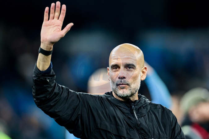 Pep Guardiola Manchester City manager celebrates 3-0 win after the Premier League match Manchester City vs Liverpool at Etihad Stadium, Manchester, United Kingdom, 9th November 2025, Credit:Mark Cosgrove/News Images / Avalon