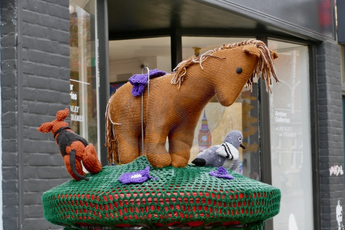 A post box topper depicting animals that helped during the war. General atmosphere during the Henley on Thames Remembrance Sunday Service held in the market place., Credit:Geoffrey Swaine / Avalon