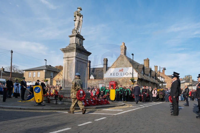 Remembrance Sunday march , with wreath laying and church service at St Andrew's church, Soham, Cambridgeshire, UK.