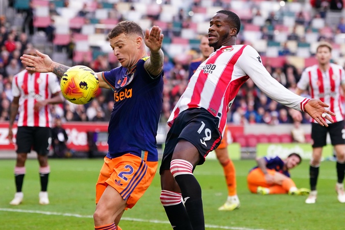 Kieran Trippier of Newcastle United and Dango Ouattara of Brentford during the Premier League match Brentford vs Newcastle United at The Gtech Community Stadium, London, United Kingdom, 9th November 2025, Credit:Harvey Murphy/News Images / Avalon