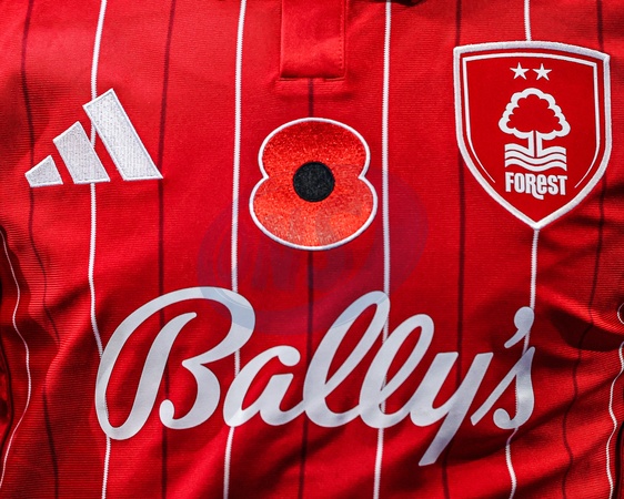 The Remembrance Day poppy on the front of the Nottingham Forest home shirt during the Premier League match Nottingham Forest vs Leeds United at City Ground, Nottingham, United Kingdom, 9th November 2025, Credit:Ae Cosgrove/News Images / Avalon
