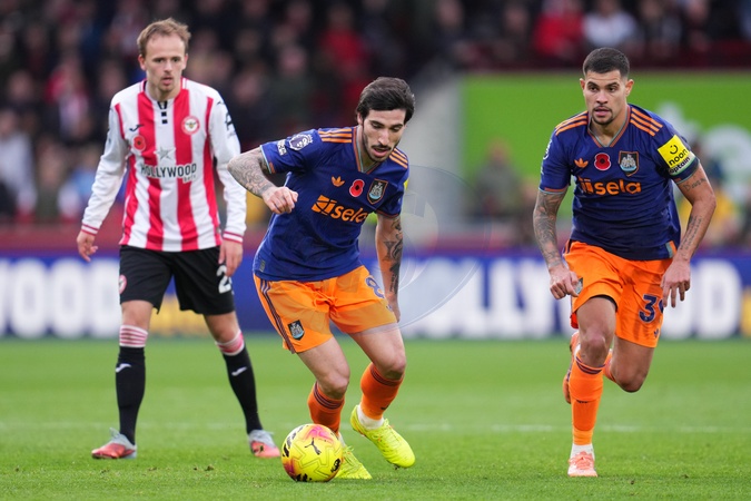 Sandro Tonali of Newcastle United on the ball during the Premier League match Brentford vs Newcastle United at The Gtech Community Stadium, London, United Kingdom, 9th November 2025, Credit:Harvey Murphy/News Images / Avalon