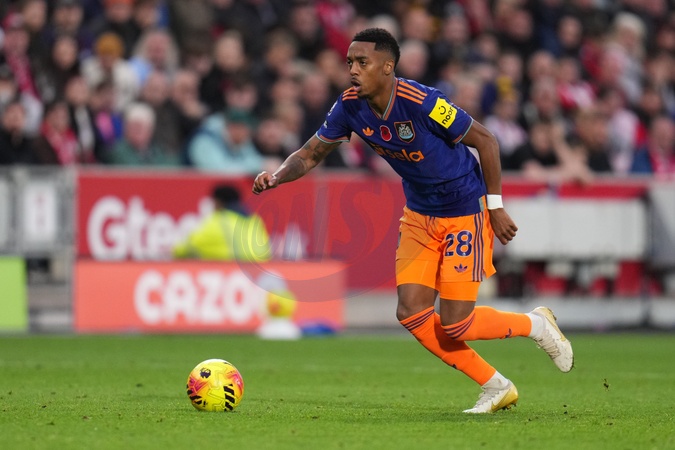 Joe Willock of Newcastle United on the ball during the Premier League match Brentford vs Newcastle United at The Gtech Community Stadium, London, United Kingdom, 9th November 2025, Credit:Harvey Murphy/News Images / Avalon
