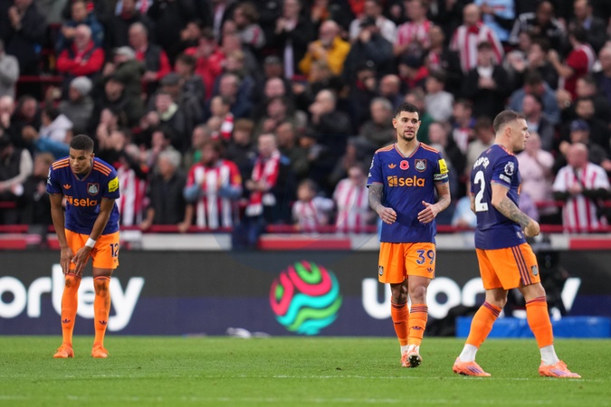 Newcastle United players after conceding during the Premier League match Brentford vs Newcastle United at The Gtech Community Stadium, London, United Kingdom, 9th November 2025, Credit:Harvey Murphy/News Images / Avalon