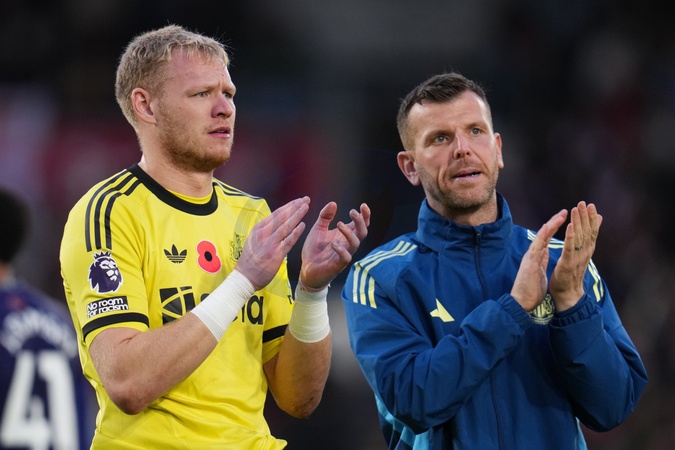 Aaron Ramsdale of Newcastle United applauds away support during the Premier League match Brentford vs Newcastle United at The Gtech Community Stadium, London, United Kingdom, 9th November 2025, Credit:Harvey Murphy/News Images / Avalon