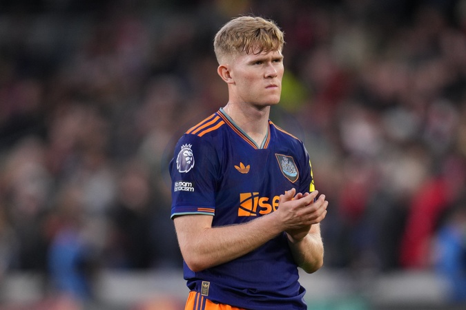 Lewis Hall of Newcastle United at full time during the Premier League match Brentford vs Newcastle United at The Gtech Community Stadium, London, United Kingdom, 9th November 2025, Credit:Harvey Murphy/News Images / Avalon