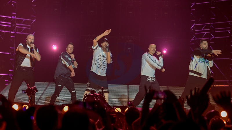 Members of 1990's boyband Five (Scott Robinson, Abz Love, Sean Conlon, Jason "J" Brown and Ritchie Neville ) perform for the first time in 25 years onstage at Utilita Arena Birmingham, Credit:Jules Annan / Avalon