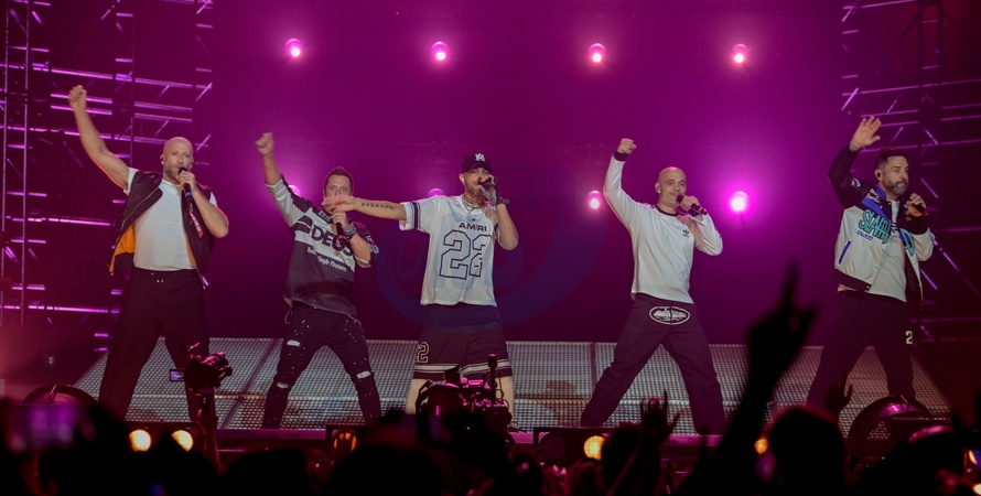 Members of 1990's boyband Five (Scott Robinson, Abz Love, Sean Conlon, Jason "J" Brown and Ritchie Neville ) perform for the first time in 25 years onstage at Utilita Arena Birmingham, Credit:Jules Annan / Avalon