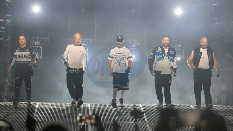Members of 1990's boyband Five (Scott Robinson, Abz Love, Sean Conlon, Jason "J" Brown and Ritchie Neville ) perform for the first time in 25 years onstage at Utilita Arena Birmingham, Credit:Jules Annan / Avalon