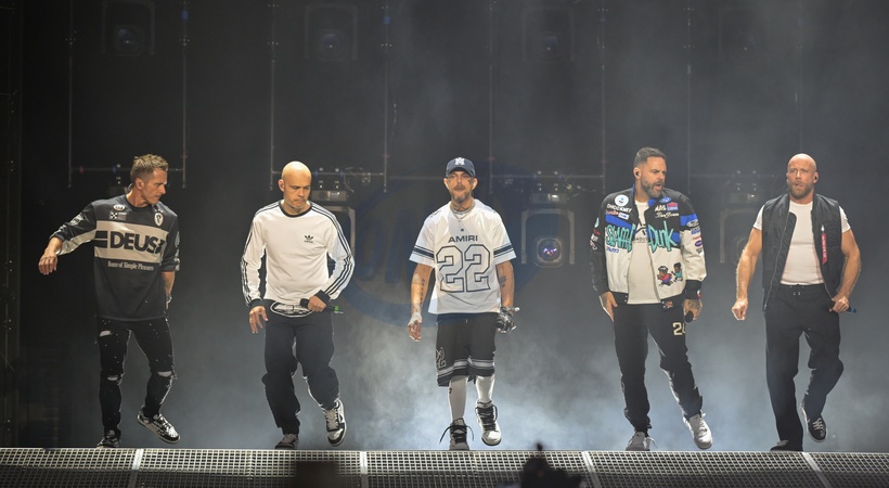 Members of 1990's boyband Five (Scott Robinson, Abz Love, Sean Conlon, Jason "J" Brown and Ritchie Neville ) perform for the first time in 25 years onstage at Utilita Arena Birmingham, Credit:Jules Annan / Avalon