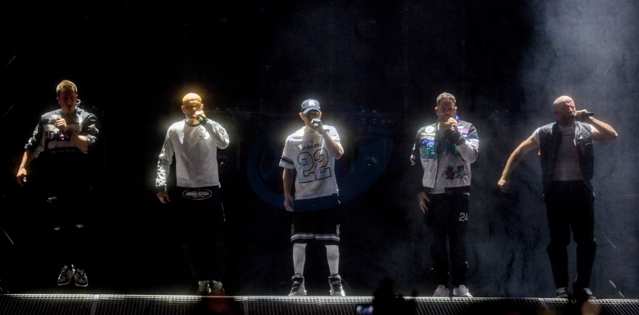 Members of 1990's boyband Five (Scott Robinson, Abz Love, Sean Conlon, Jason "J" Brown and Ritchie Neville ) perform for the first time in 25 years onstage at Utilita Arena Birmingham, Credit:Jules Annan / Avalon