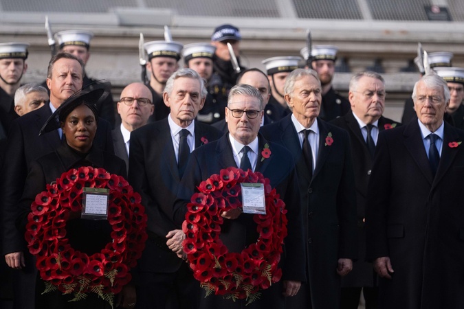 Boris Johnson, Kemi Badenoch, Gordon Brown, Keir Starmer, David Cameron and John Major during the National Service of Remembrance at the Cenotaph, London, UK, 09 November 2025., Credit:Joanne Davidson / Avalon