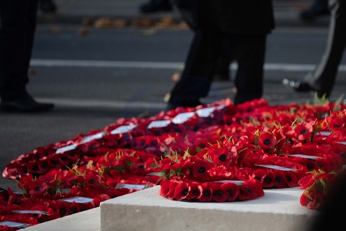 Wreaths laid on the cenotaph during the National Service of Remembrance at the Cenotaph, London, UK, 09 November 2025., Credit:Joanne Davidson / Avalon