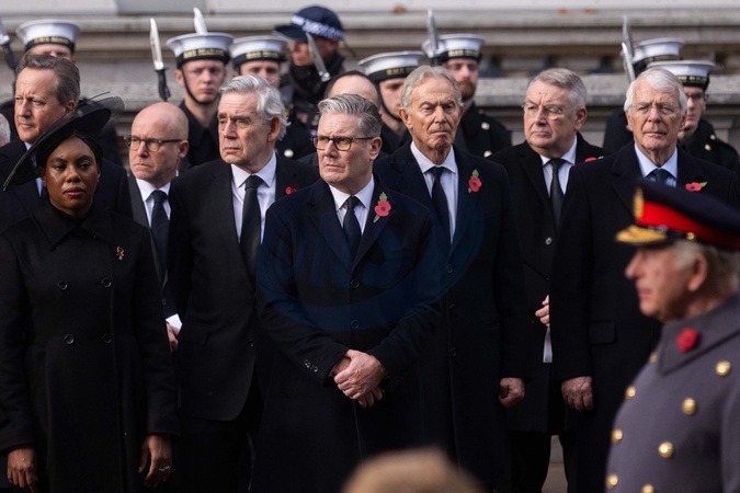 Kemi Badenoch, Gordon Brown, Keir Starmer, David Cameron and John Major during the National Service of Remembrance at the Cenotaph, London, UK, 09 November 2025., Credit:Joanne Davidson / Avalon