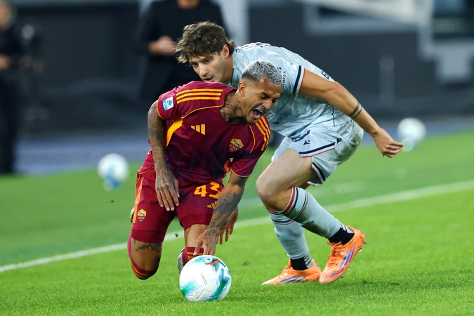Olympic Stadium, 2025-26 Serie A football championship Roma-Udinese, pictured: Franca Lima Wesley and Alessandro Zanoli . Rome, Italy 09 November 2025, Credit:Federico Proietti Sync / Avalon
