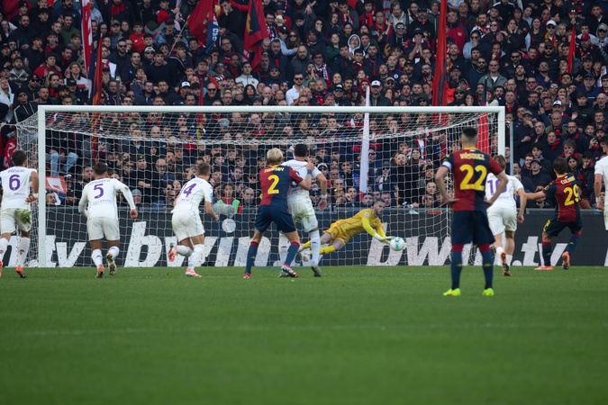 Ferraris Stadium. Serie A football championship, day 11, Genoa-Fiorentina. Pictured: savage De Gea penalty Colombo . Genova, Italy 09 November 2025, Credit:Gabriele Siri / Avalon