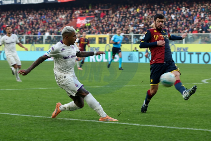 Ferraris Stadium. Serie A football championship, day 11, Genoa-Fiorentina. Pictured: Dodo and Martin . Genova, Italy 09 November 2025, Credit:Gabriele Siri / Avalon
