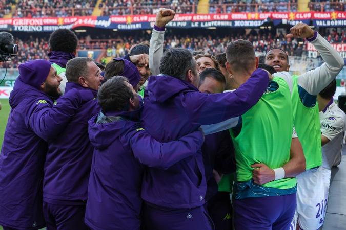 Ferraris Stadium. Serie A football championship, day 11, Genoa-Fiorentina. Pictured: esultazione di Fiorentina . Genova, Italy 09 November 2025, Credit:Gabriele Siri / Avalon