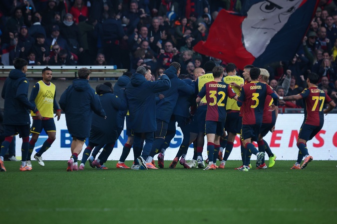 Ferraris Stadium. Serie A football championship, day 11, Genoa-Fiorentina. Pictured: Genoa's exultation . Genova, Italy 09 November 2025, Credit:Gabriele Siri / Avalon