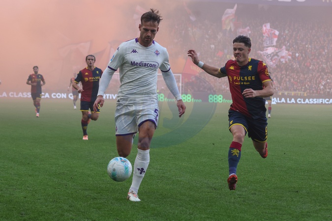 Ferraris Stadium. Serie A football championship, day 11, Genoa-Fiorentina. Pictured: Pongracic and Vitinha . Genova, Italy 09 November 2025, Credit:Gabriele Siri / Avalon