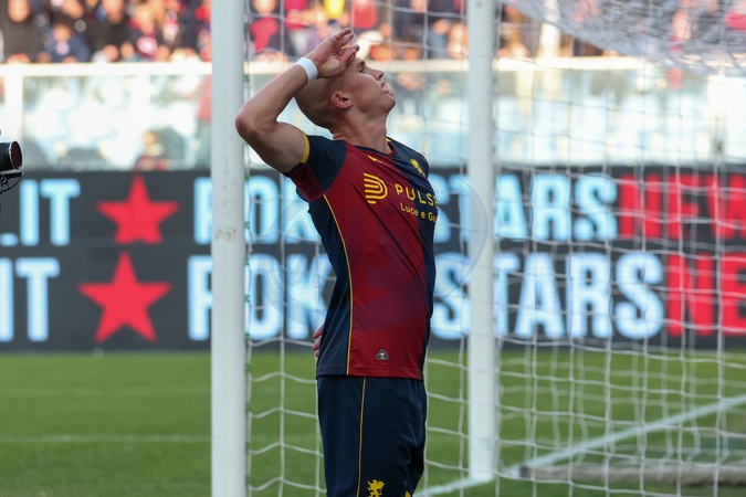 Ferraris Stadium. Serie A football championship, day 11, Genoa-Fiorentina. Pictured: esultazione di Ostigard . Genova, Italy 09 November 2025, Credit:Gabriele Siri / Avalon