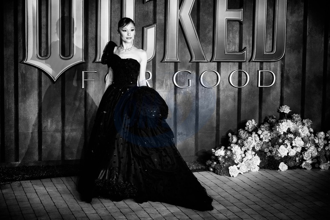 Ariana Grande seen at the European Premiere of WICKED FOR GOOD on Monday 10 November 2025 at Cineworld Leicester Square, London. Editors Note: Image converted to monochrome., Credit:Julie Edwards / Avalon
