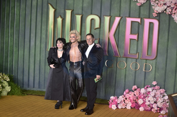 (L-R) Joan Grande, Frankie Grande and Edward Butera at the European Premiere of "Wicked For Good" at Cineworld in Leicester Square, 5-6 Leicester Square, London WC2H 7NA on Monday 10 November 2025., Credit:Sue Andrews / Avalon