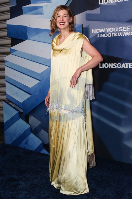MANHATTAN, NEW YORK CITY, NEW YORK, USA - NOVEMBER 10: English actress and producer Rosamund Pike arrives at the New York Premiere Of Lionsgate's 'Now You See Me: Now You Don't' held at The Lighthouse at Chelsea Piers on November 10, 2025 in Manhattan, New York City, New York, United States., Credit:Image Press Agency / Avalon