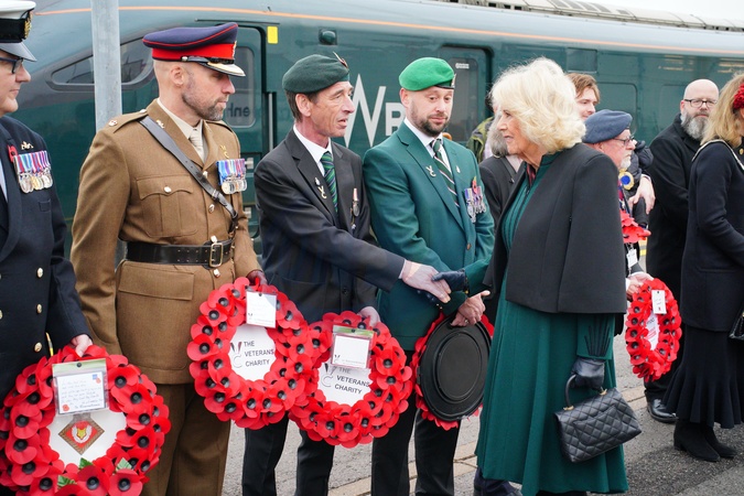 Queen Camilla at London Paddington train station as part of the Great Western Railway 'Poppies to Paddington' event to mark Armistice Day. Picture date: Tuesday November 11, 2025., Credit:Ben Birchall / Avalon