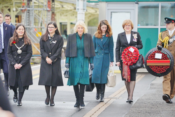 Queen Camilla at Chippenham train station in Wiltshire, as part of the Great Western Railway 'Poppies to Paddington' event to mark Armistice Day. Picture date: Tuesday November 11, 2025., Credit:Ben Birchall / Avalon