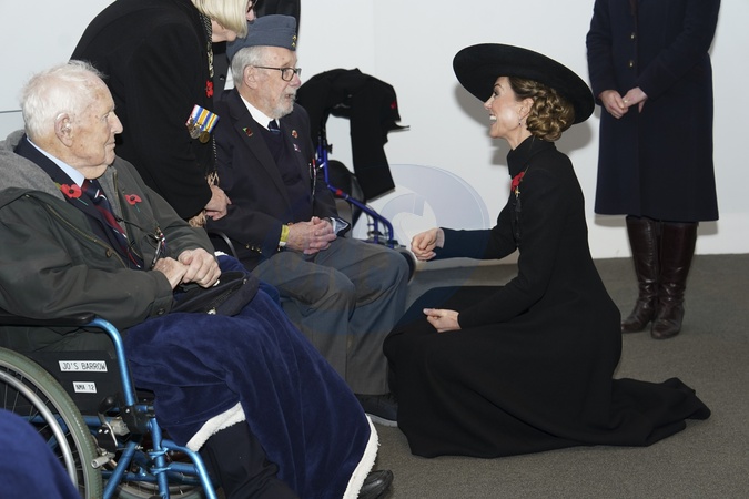 Staffordshire, UK, 11 November 2025: The Princess of Wales visited the National Memorial Arboretum commemorating Armistice Day with a Service of Remembrance at the Armed Forces Memorial. She laid a wreath in remembrance of those who have made the ultimate sacrifice and all those who have served in the Armed Forces. Catherine meets D Day veteran Alan Kennett., Credit:Arthur Edwards / Avalon