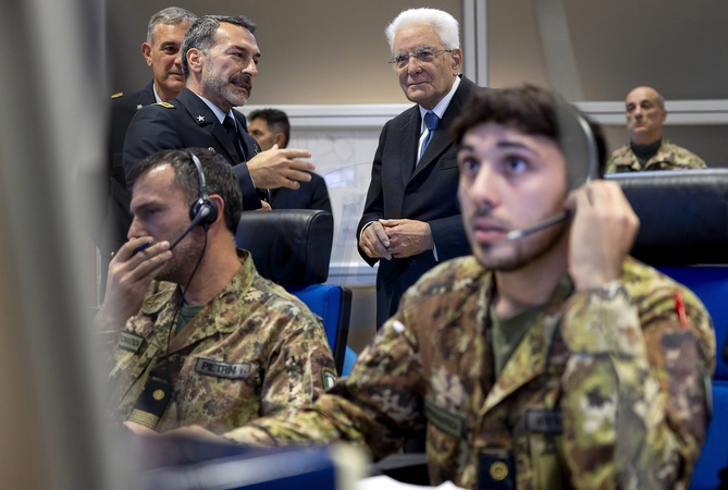 President Sergio Mattarella, during his visit to the ENAV Radar ACC (Area Control Center), illustrated the island dedicated to the Italian Air Force. Ciampino. Italy 11 November 2025, Credit:Paul Giandotti / Avalon