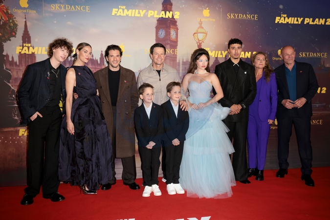 Van Crosby, Michelle Monaghan, Kit Harington, Theodore Lindsay, Mark Wahlberg, Peter Lindsay, Zoe Colletti, Reda Elazouar, Sidse Babett Knudsen and Simon Cellan Jones at Family Plan 2 World Premiere at Curzon Mayfair in London, UK, on 11th November 2025, Credit:James Shaw / Avalon