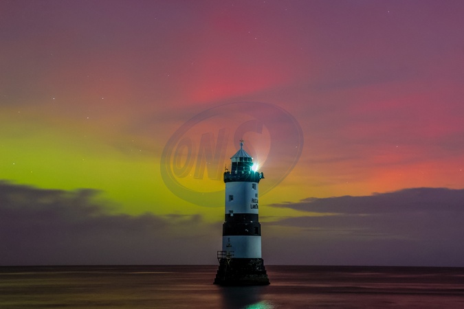 Northern Lights also know as the Aurora Borealis shine and dance over Penmon Lighthouse, Penmon, on Anglesey, United Kingdom, 12th November 2025, Credit:Mark Cosgrove/News Images / Avalon