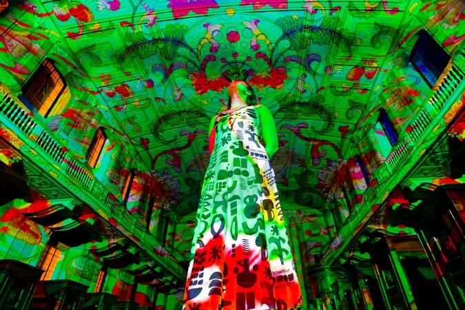 Greenwich glows again: Time by Luxmuralis lights up the Old Royal Naval College, from the home of Greenwich Mean Time., Credit:Aldo Ciarrocchi / Avalon