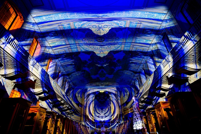 Greenwich glows again: Time by Luxmuralis lights up the Old Royal Naval College, from the home of Greenwich Mean Time., Credit:Aldo Ciarrocchi / Avalon