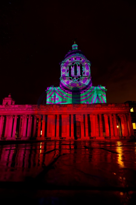 Greenwich glows again: Time by Luxmuralis lights up the Old Royal Naval College, from the home of Greenwich Mean Time., Credit:Aldo Ciarrocchi / Avalon