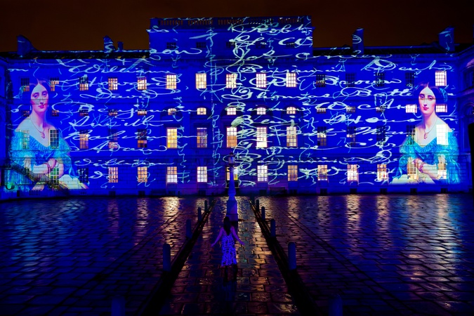 Greenwich glows again: Time by Luxmuralis lights up the Old Royal Naval College, from the home of Greenwich Mean Time., Credit:Aldo Ciarrocchi / Avalon