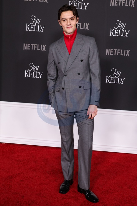 HOLLYWOOD, LOS ANGELES, CALIFORNIA, USA - NOVEMBER 11: English actor Louis Partridge arrives at the Los Angeles Premiere Of Netflix's 'Jay Kelly' held at The Egyptian Theatre Hollywood on November 11, 2025 in Hollywood, Los Angeles, California, United States., Credit:Xavier Collin / Avalon