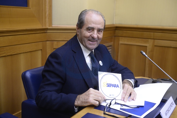 Italy, Rome, 12 November, 2025 : Press conference for the presentation of the 'Yes Separate' committee for the 'yes' in the referendum on the separation of careers in the judiciary.In the photo the former magistrate Antonio Di Pietro, Credit:Stefano Carofei / Avalon