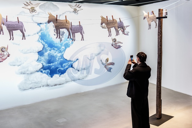 The inauguration of "Prayer to Go to Heaven with Donkeys - Preghiera per andare in Paradiso con gli asinelli - Homage to Francis Jammes" by Raffaele Curi, held in the spaces of Palazzo Rhinoceros, part of the Alda Fendi - Esperimenti Foundation. Pictured: the installation. Rome, Nov 10th 2025, Credit:Luigi Narici/AGF / Avalon