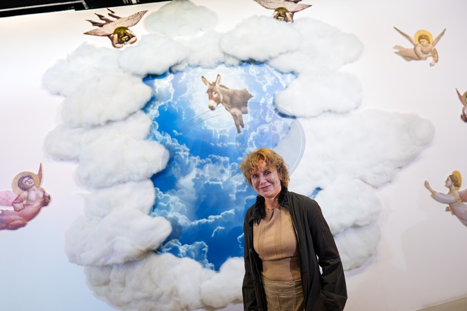 The inauguration of "Prayer to Go to Heaven with Donkeys - Preghiera per andare in Paradiso con gli asinelli - Homage to Francis Jammes" by Raffaele Curi, held in the Palazzo Rhinoceros spaces of the Alda Fendi - Esperimenti Foundation. Pictured: Sabina Guzzanti Rome, Nov 10th 2025, Credit:Luigi Narici/AGF / Avalon