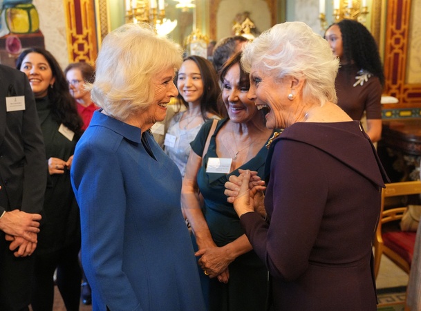 Queen Camilla, Patron of the English National Ballet, speaks with Arlene Phillips and Angela Rippon during a reception with staff, dancers, and supporters to celebrate the company's 75th anniversary and recognise the heritage, innovative creation of new works, and their learning and engagement programme, at Buckingham Palace in central London. Picture date: Wednesday November 12, 2025., Credit:Yui Mok / Avalon