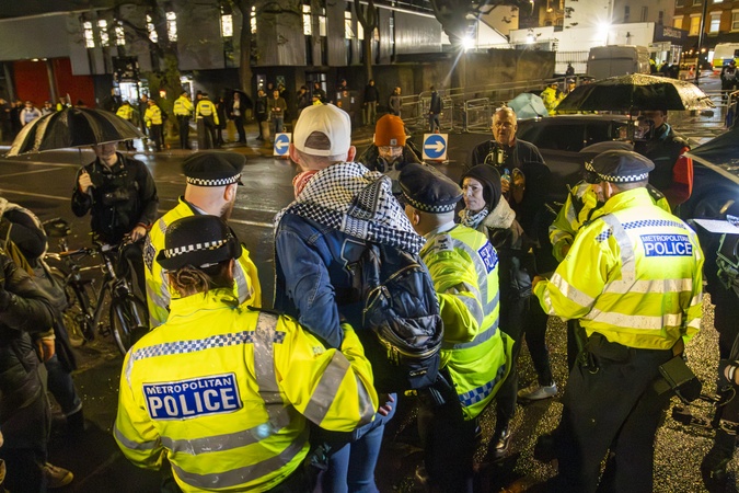 Protesters and counter-protesters gathered outside the O2 Forum Kentish Town during Bob Vylan's performance in London. The demonstration led to a heavy police presence, with tensions rising between the opposing groups. Several arrests were made as officers intervened to separate protesters and maintain order outside the venue. The incident briefly disrupted access to the concert before crowds dispersed later in the evening., Credit:Zak Irfan / Avalon