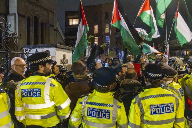 Protesters and counter-protesters gathered outside the O2 Forum Kentish Town during Bob Vylan's performance in London. The demonstration led to a heavy police presence, with tensions rising between the opposing groups. Several arrests were made as officers intervened to separate protesters and maintain order outside the venue. The incident briefly disrupted access to the concert before crowds dispersed later in the evening., Credit:Zak Irfan / Avalon