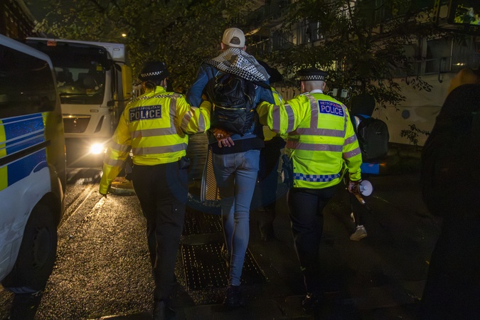 Protesters and counter-protesters gathered outside the O2 Forum Kentish Town during Bob Vylan's performance in London. The demonstration led to a heavy police presence, with tensions rising between the opposing groups. Several arrests were made as officers intervened to separate protesters and maintain order outside the venue. The incident briefly disrupted access to the concert before crowds dispersed later in the evening., Credit:Zak Irfan / Avalon