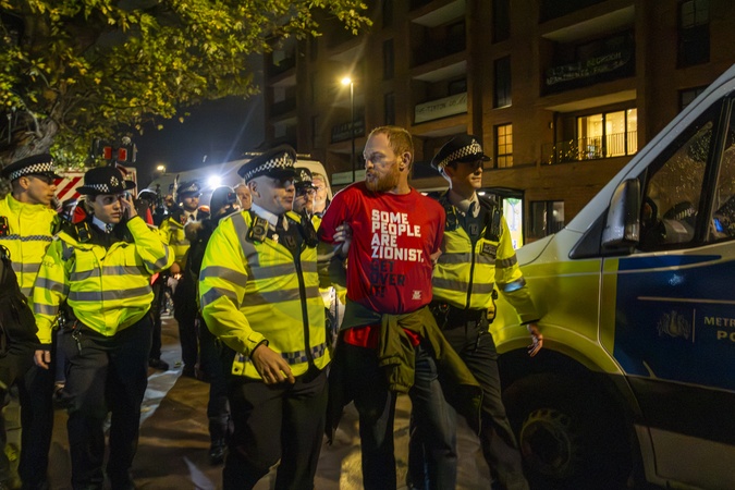 Protesters and counter-protesters gathered outside the O2 Forum Kentish Town during Bob Vylan's performance in London. The demonstration led to a heavy police presence, with tensions rising between the opposing groups. Several arrests were made as officers intervened to separate protesters and maintain order outside the venue. The incident briefly disrupted access to the concert before crowds dispersed later in the evening., Credit:Zak Irfan / Avalon