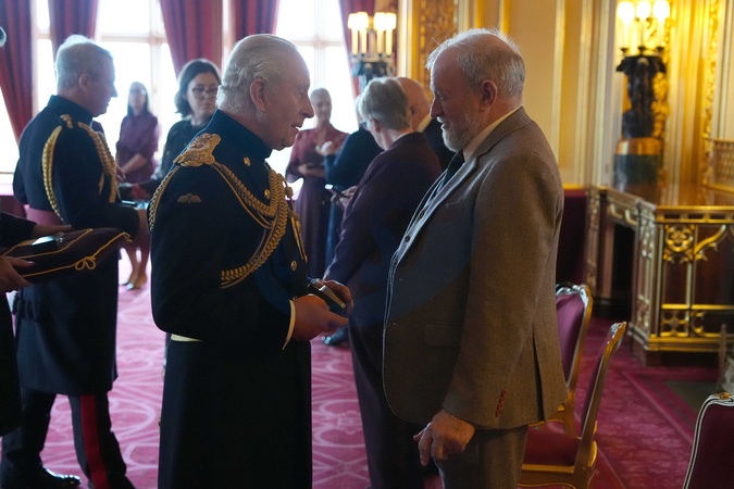 Mr. Raymond Sheehan (Brother) receives the Elizabeth Emblem from King Charles III at Windsor Castle, Berkshire, for Constable Kenneth Sheehan, Northern Ireland Police Authority. Picture date: Wednesday November 12, 2025., Credit:Jonathan Brady / Avalon